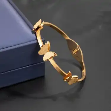 RaaSya Elegant Stainless Steel Butterfly & Star Crystal Bangle/Bracelet - 22K Gold Plated, Waterproof, Anti-Tarnish, and Adjustable - Fashion Jewelry for Women and Girls with Over One Year of Daily Wear Durability