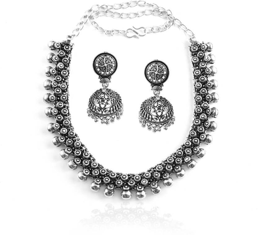 | Premium Quality Disgner Oxidized German Silver Brass Alloy Necklace/chocker set with Earrings for Women/Girl. |